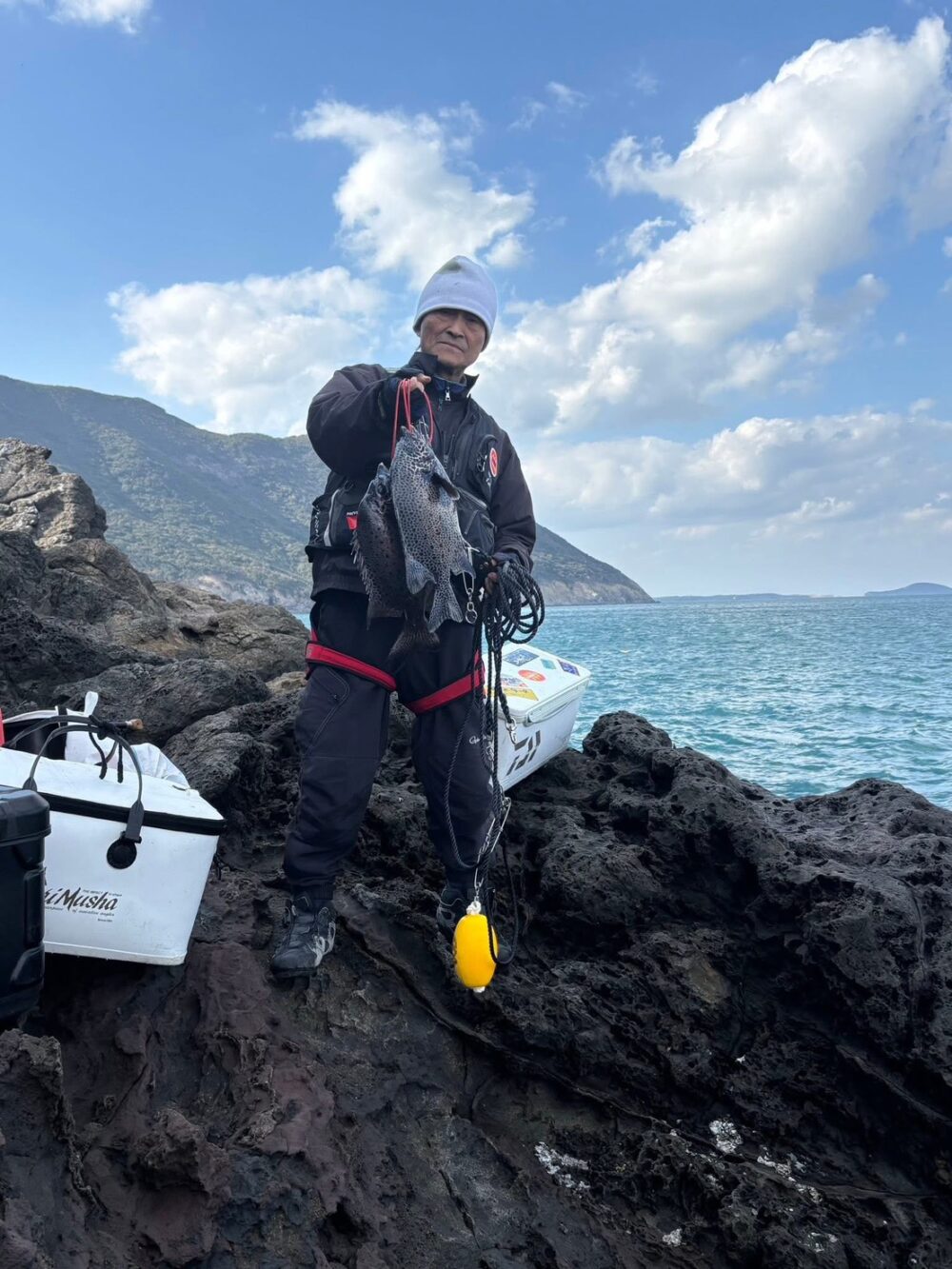 昨夜から九州磯釣連盟 牛島連盟最高顧問の釣りクラブかもめ会の釣り大会に参加して来ました^ – ^